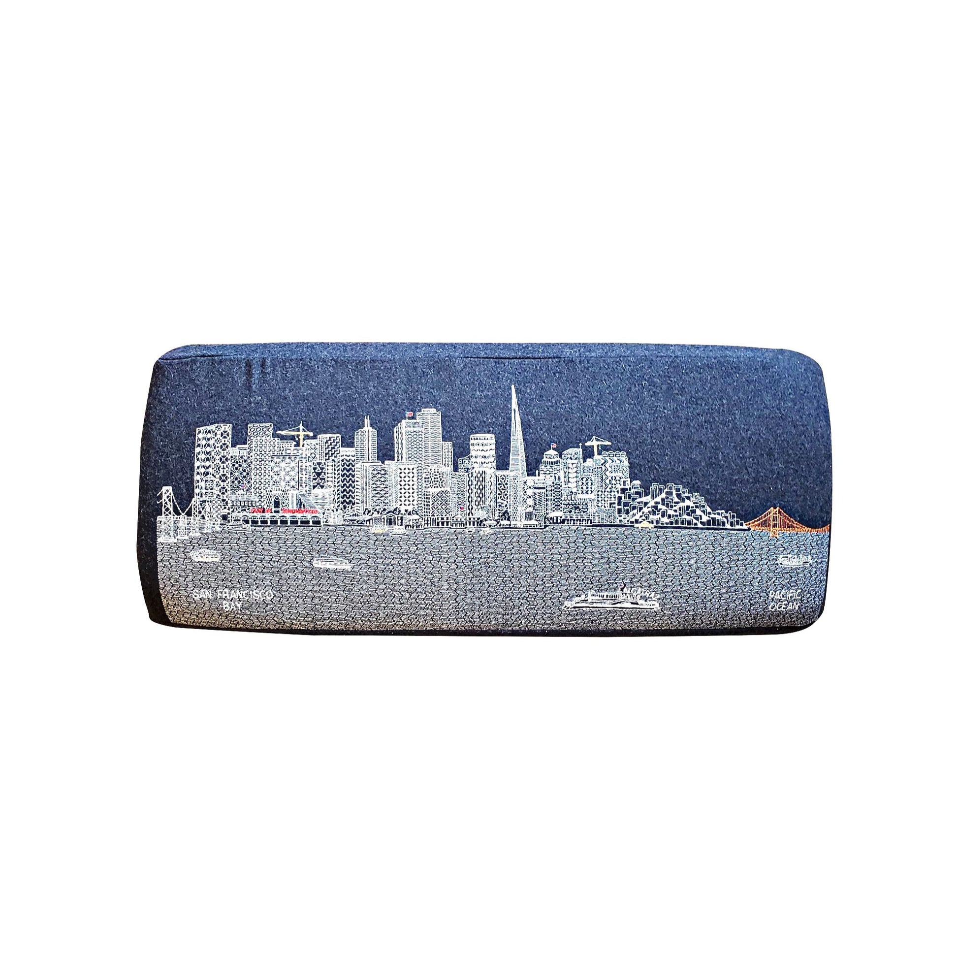 Our stylish, modern ottoman is beautifully embroidered with city skylines in either our day or night design. The magnificent skyline is created with our signature, modern, whimsical design with hints of brilliant color, bringing each of our skylines to life.