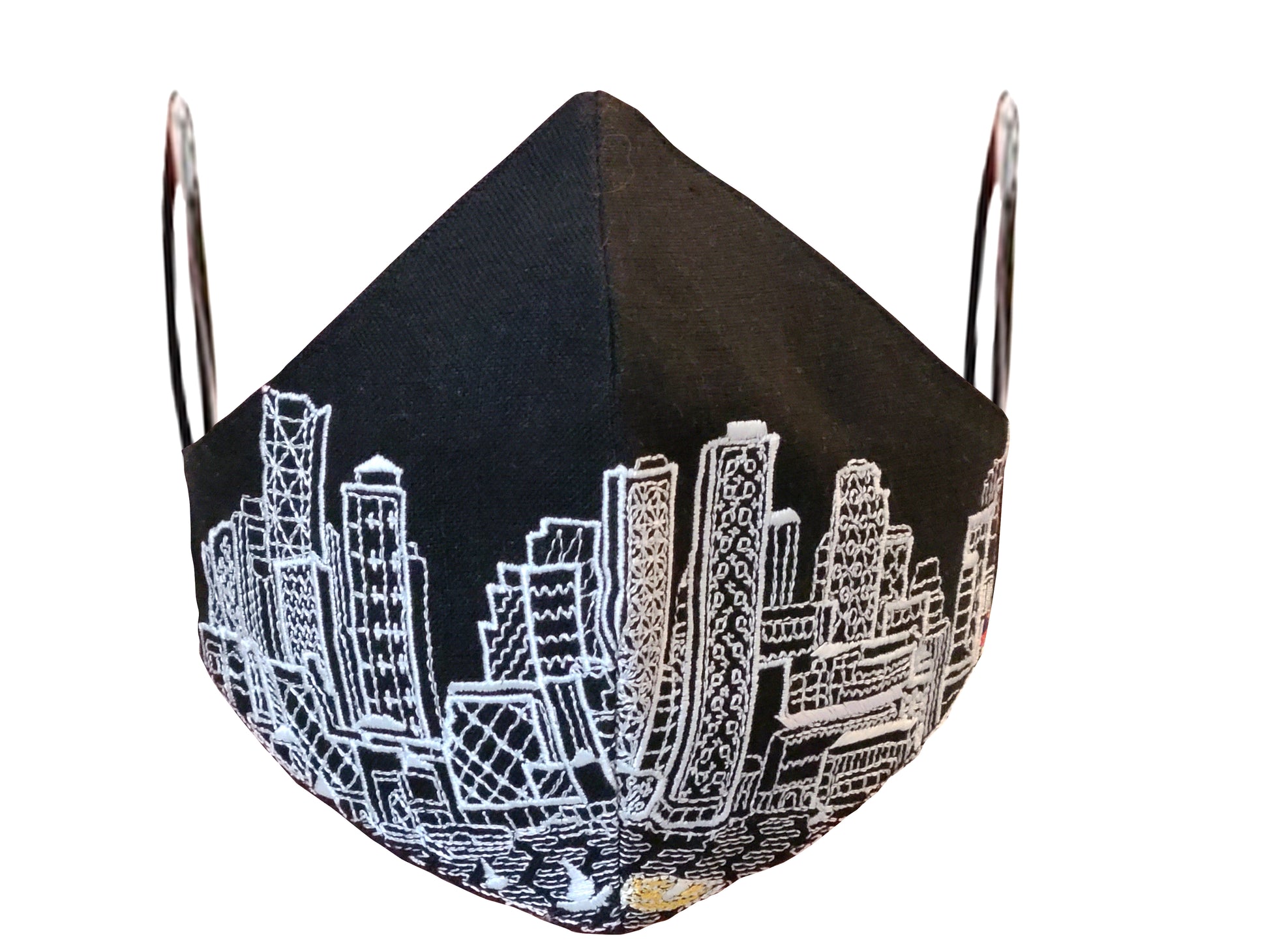 Designed and embroidered on linen/cotton with a soft cotton lining - our popular city skylines now available as face masks.