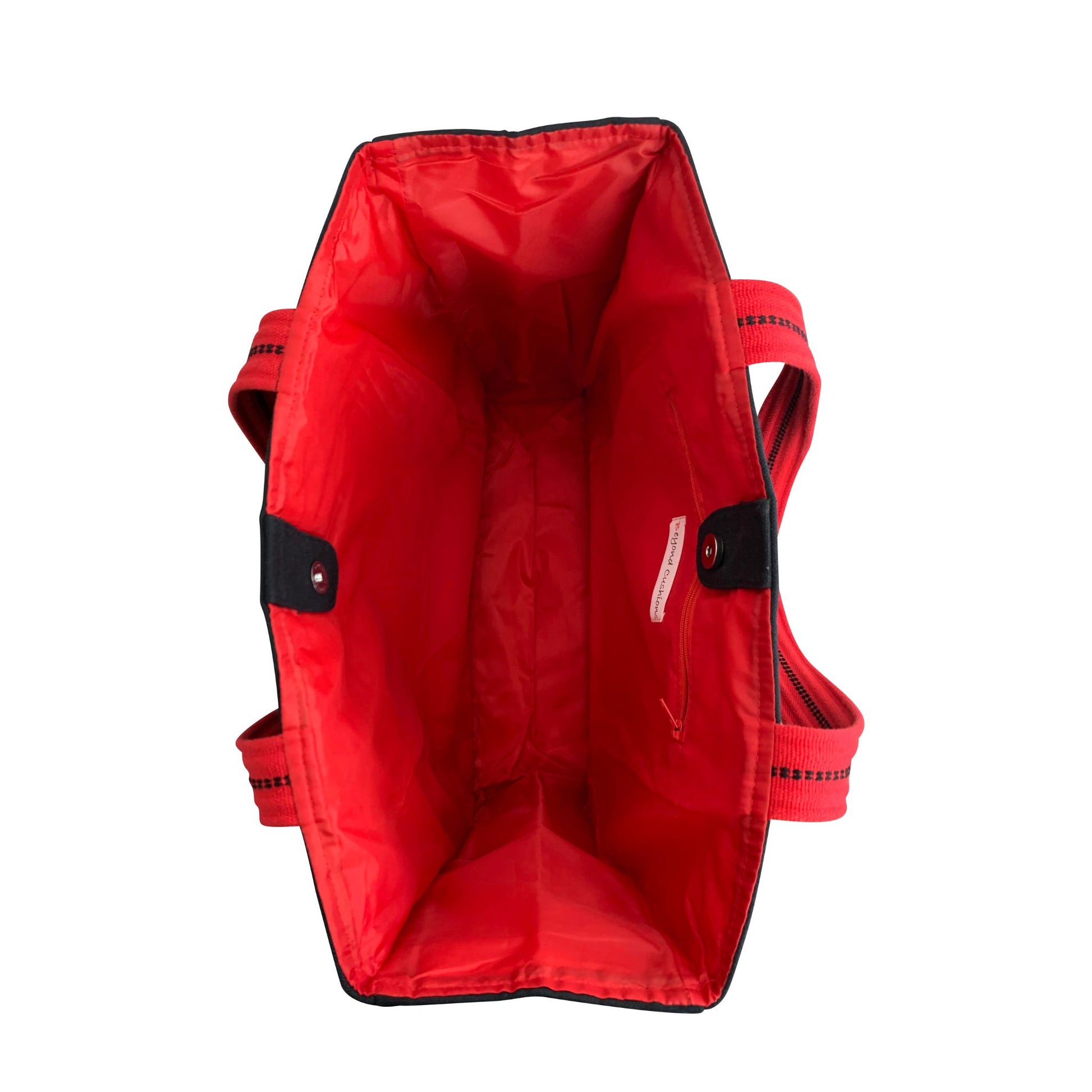 Our 100% cotton canvas totes are beautifully embroidered in our signature, modern whimsical design style with hints of brilliant color, bringing each of our skylines to life. Each Tote comes in two color options of Day (Cream) and Night (Black). Our totes come with red waterproof washable lining, an inside pocket and attractive ribbed red straps. The day and night options are showing each side of the same bag.